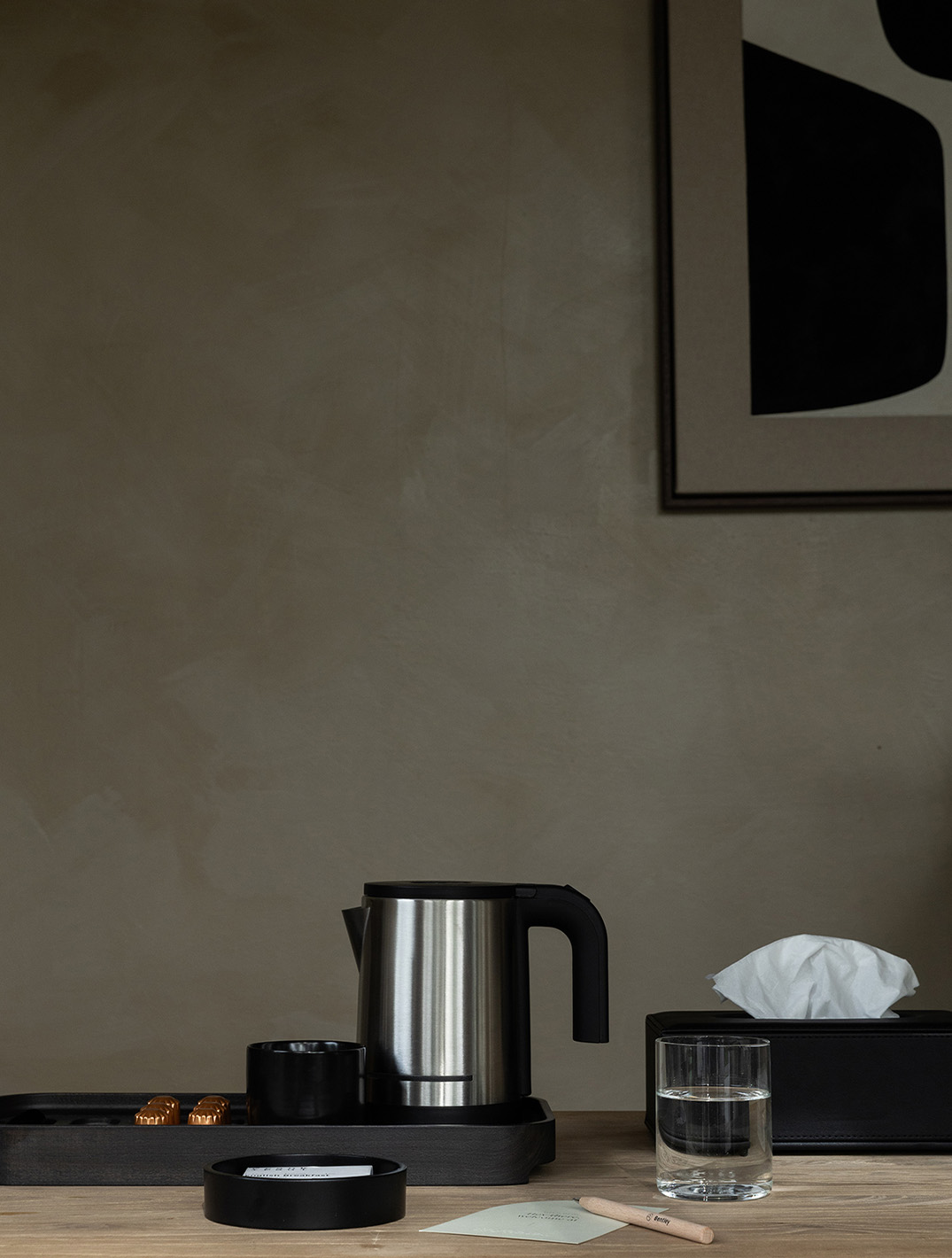 Das Ligna Willkommenstablett hält alle wichtigen Elemente übersichtlich organisiert und bringt Funktionalität sowie eine ruhige, durchdachte Ästhetik ins Hotelzimmer. Es ist eine kompakte und zuverlässige Lösung für Hotels, die ihre In-Room-Teepräsentation aufwerten möchten.