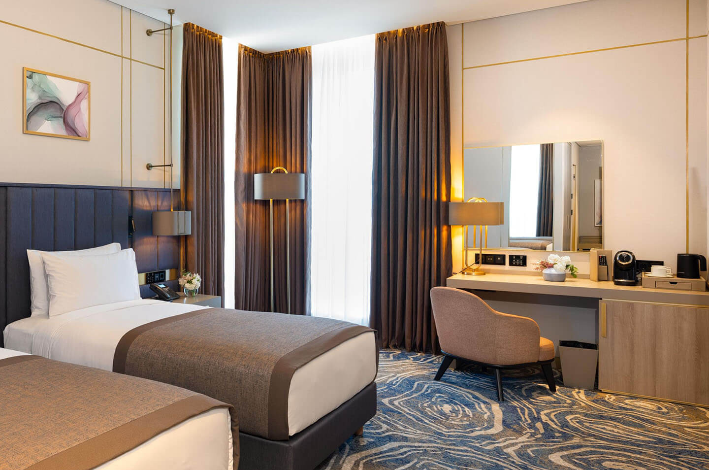 Beim Betreten der majestätischen Lobby des InterContinental Baku werden Sie von einer Atmosphäre der Eleganz und Opulenz empfangen. Das Hotel vereint nahtlos moderne Architektur mit traditionellen aserbaidschanischen Designelementen und schafft so eine einzigartige und fesselnde Umgebung.