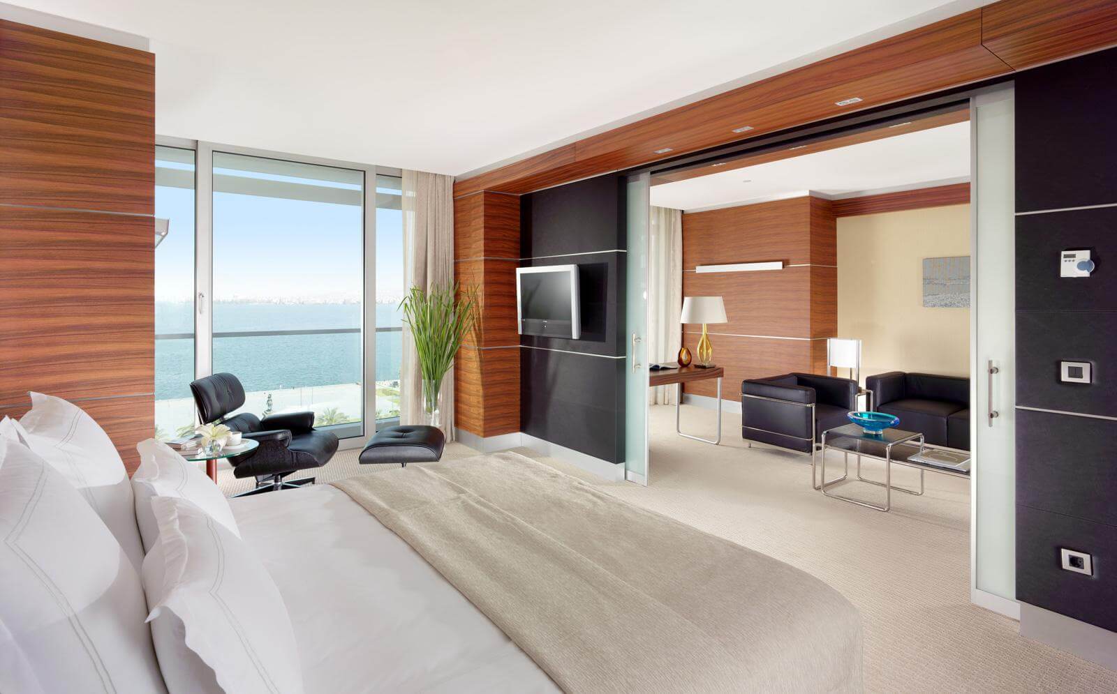Bentley hat für dieses schöne Hotel mehrere Zimmerausstattungen geliefert. Um nur zwei von ihnen zu nennen: den Coral Wasserkocher, und die Swirl Premium Bügelstation. Der Coral Wasserkocher ist aus hochwertigen Materialien gefertigt und so konzipiert, dass er sowohl langlebig als auch einfach zu bedienen ist. Und unser Swirl Premium Bügelbrett ist in jedem Luxushotel unverzichtbar, besonders wenn Sie viele Business-Gäste empfangen. Unsere Bügelstationen passen in jeden Kleiderschrank. Die soliden mattschwarzen Beine sehen nicht nur elegant aus, sie sind vor allem äußerst bedienerfreundlich. Der Bügeltisch ist in der Höhe verstellbar und sehr leicht zu handhaben. Bei Bentley denken wir an jedes Detail, wenn es um die Ausstattung von Hotelzimmern geht.