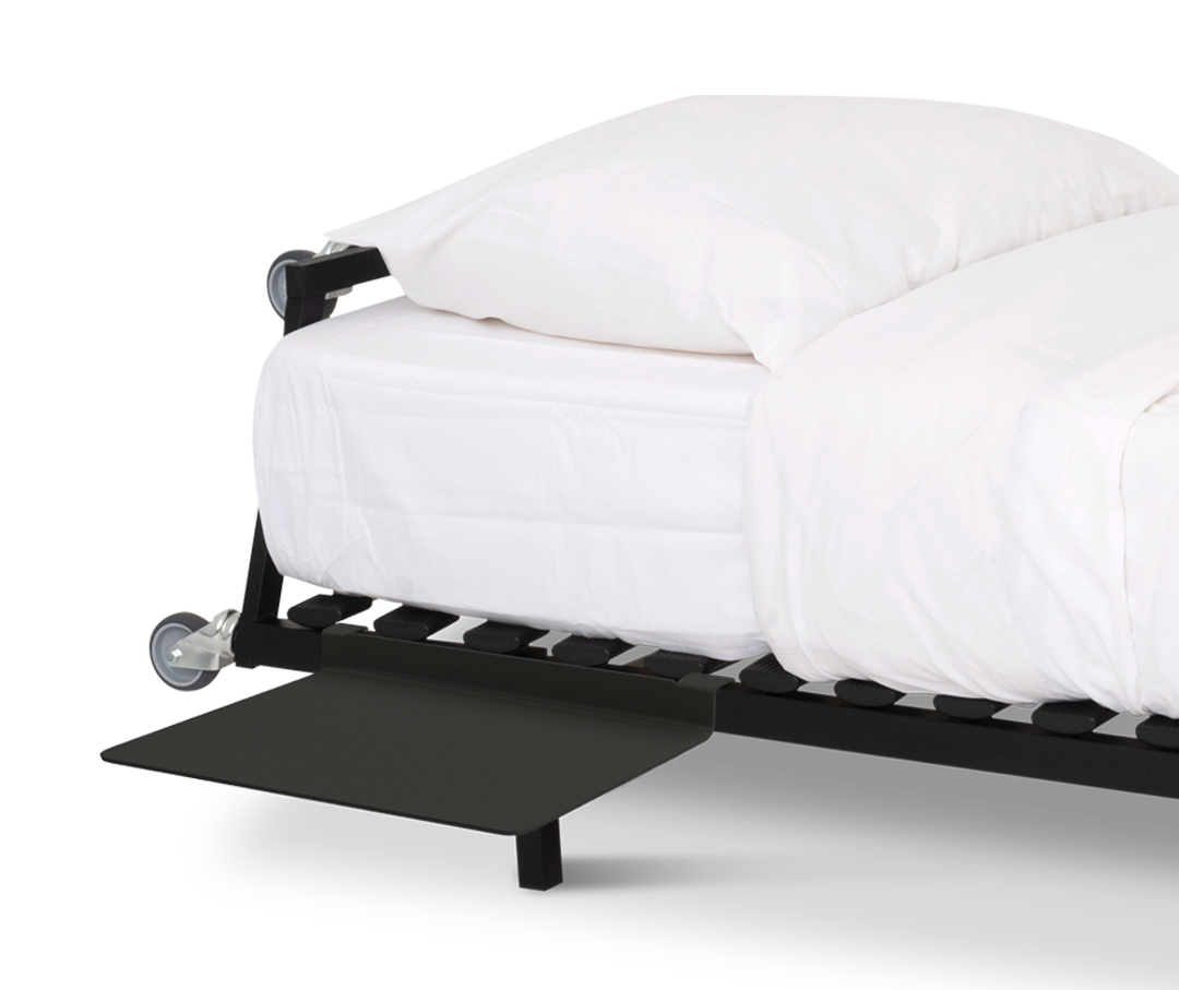 Wir präsentieren unseren eleganten Erweiterungstisch, der speziell für die Jade- und Verdi-Betten entwickelt wurde. Dieses unverzichtbare Zubehör bietet eine praktische Ablagefläche für kleine Gegenstände und hält alles in Reichweite. Hergestellt in den Niederlanden, verkörpert dieser Tisch 100 % niederländisches Design und besteht aus robustem, pulverbeschichtetem Stahl, der sowohl Stil als auch Langlebigkeit gewährleistet.