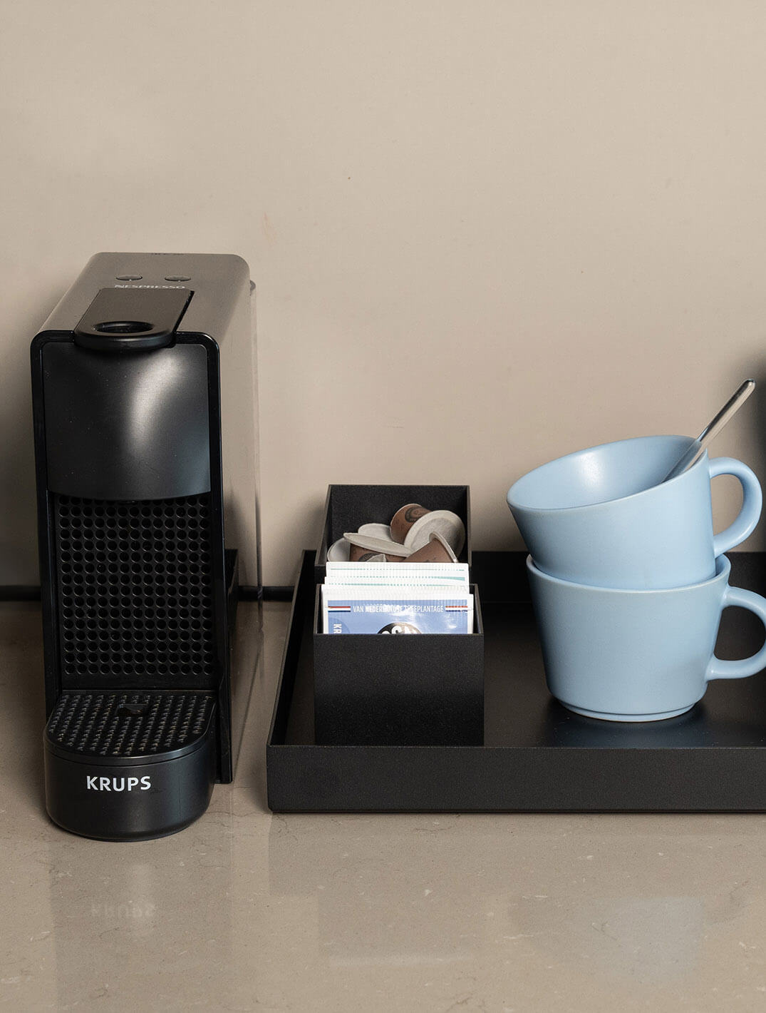 Minimalistic and practical, the Lucy Black Condiment Box is designed to keep in-room tea and coffee essentials neatly organised. Made from durable metal, it holds up to daily use while remaining easy to clean, ensuring a professional presentation.