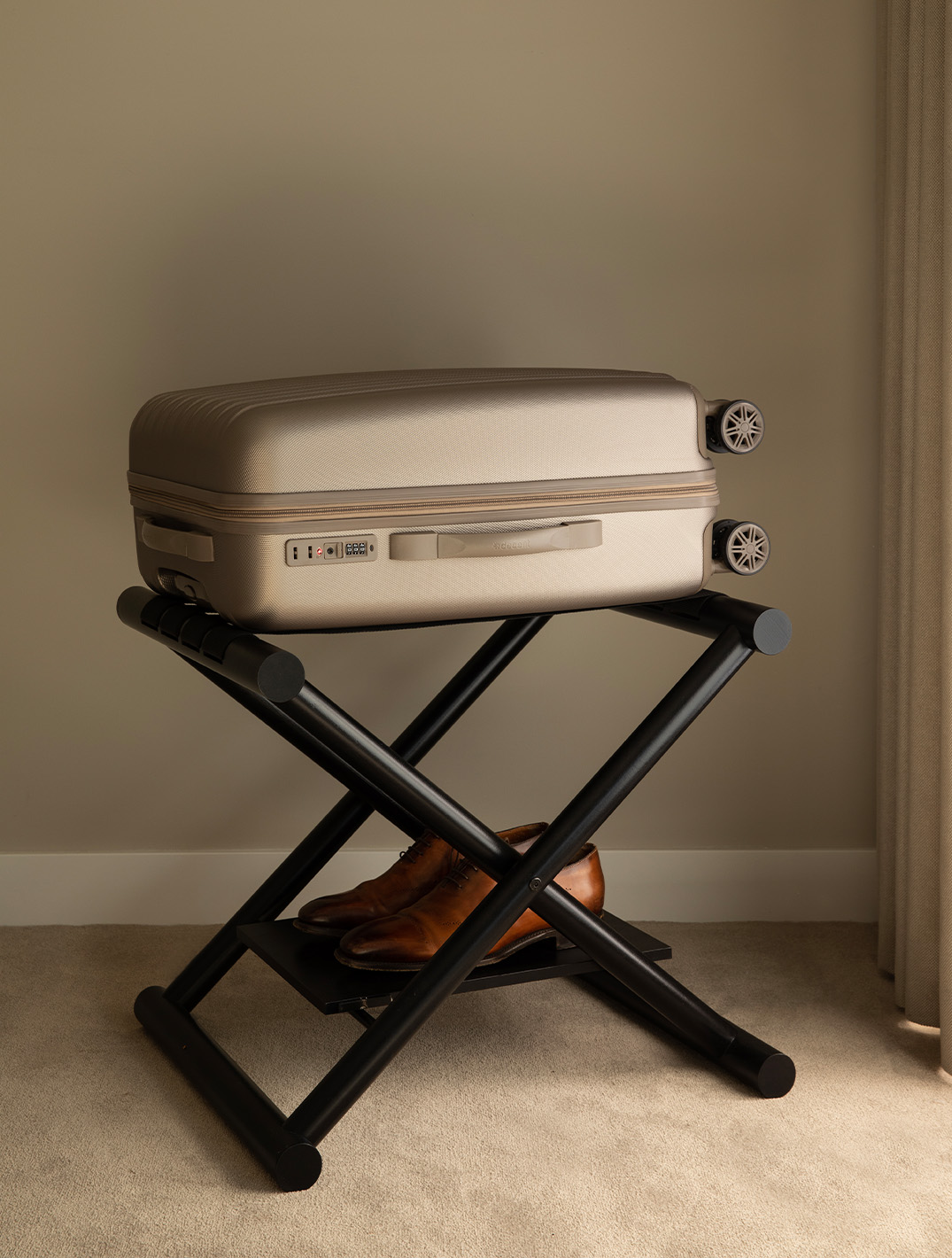 Enhance your guests' experience and create a welcoming atmosphere with this practical and beautiful luggage rack.