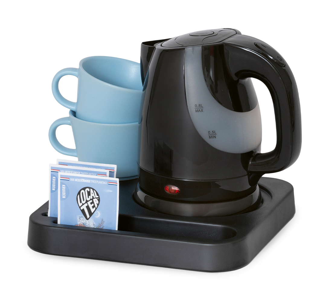 - Espace pour la bouilloire, les tasses, les sachets et les cuillères